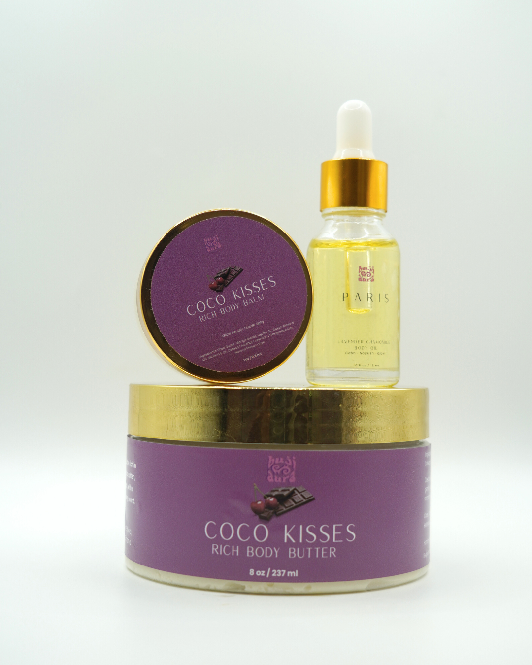 Coco Kisses is a thick, ultra-moisturizing body butter crafted with shea, mango, and nourishing plant oils to drench your skin in long-lasting hydration. The scent is pure temptation—rich cocoa layered with ripe cherry for a warm, flirty finish that lingers.