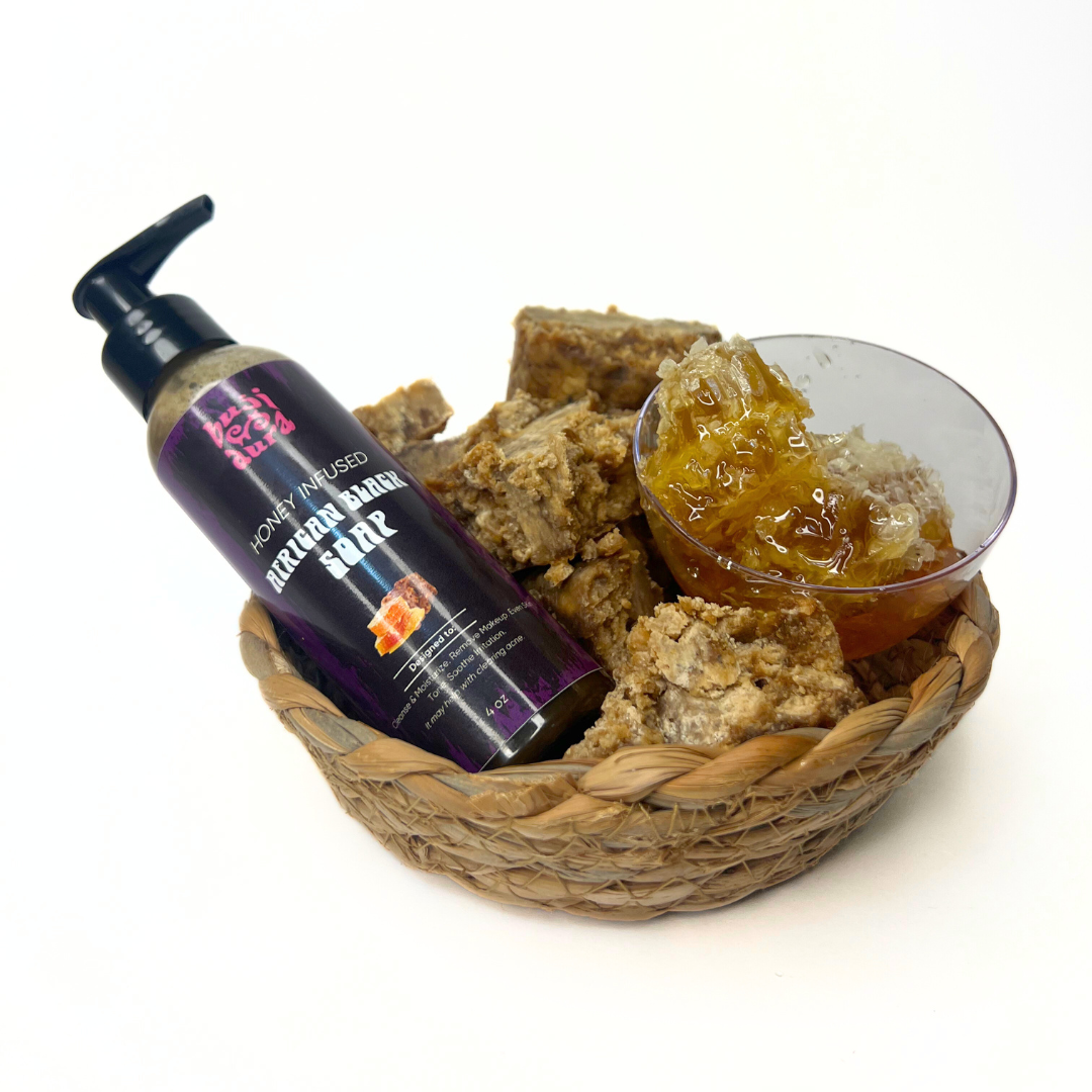 Experience the heritage of African skincare with our handcrafted Liquid Black Soap. Made in small batches with nourishing honey and soothing aloe, this gentle yet powerful cleanser effectively removes dirt, oil, and impurities without stripping essential moisture. Each use leaves your skin feeling balanced, soft, and naturally radiant. Rich in antioxidants and vitamins, it’s especially beneficial for sensitive and acne-prone skin, helping to calm inflammation, reduce breakouts, and support a healthy skin barrier.